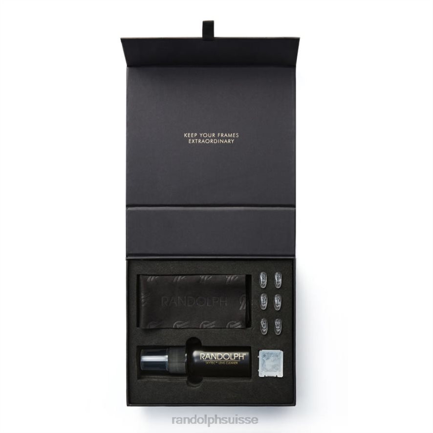 maintenez vos cadres en parfait état avec notre kit d'entretien de luxe. ce kit d'entretien randolph personnalisé et réinventé est livré avec 30 ml de spray de nettoyage pour lentilles, un chiffon de nettoyage en microfibre gaufré, un outil pour plaquettes nasales, un tournevis personnalisé, six plaquettes nasales de rechange et dix vis de monture de rechange.